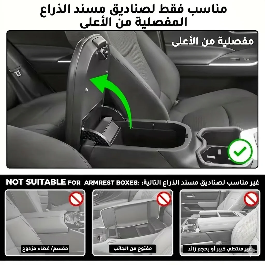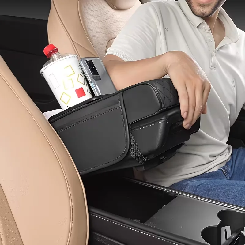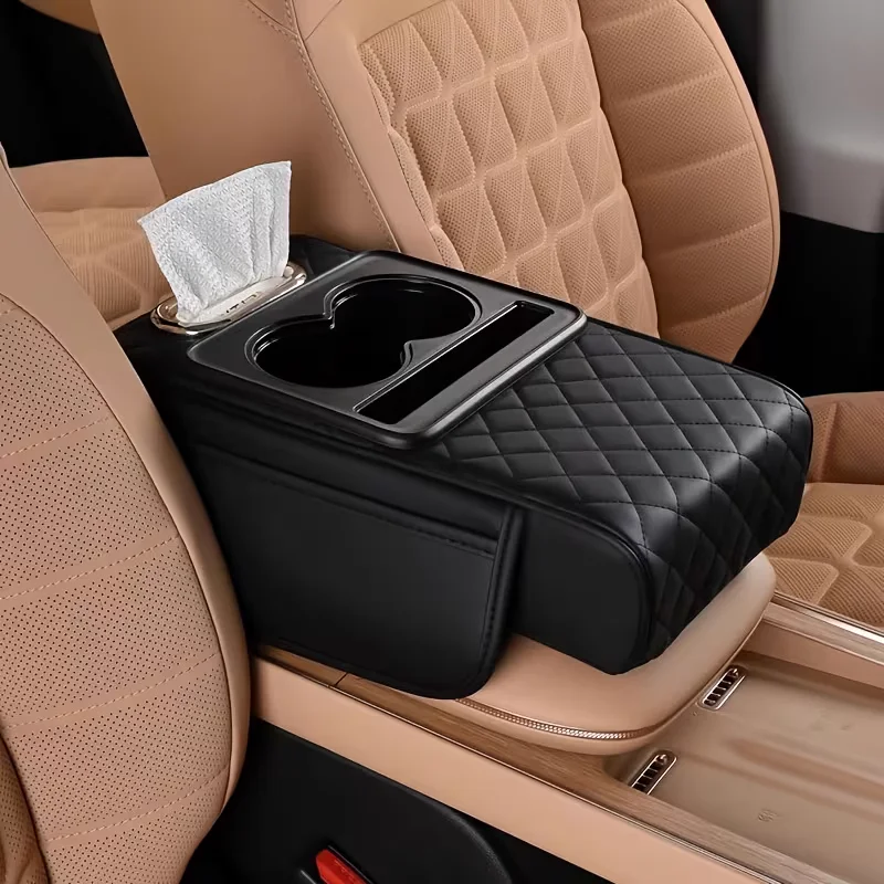 أضف راحة وتنظيم لسيارتك مع منظم الذراع المتعدد الوظائف. حامل أكواب، مكان مناديل، وجيوب تخزين.